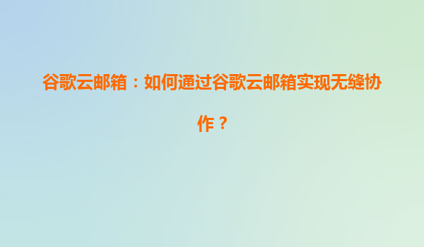 2025-08-11谷歌云邮箱:如何通过谷歌云邮箱实现无缝协作? 在当今快节奏的商业环境中,高效的团队协作是企业成功的关键因素之一。谷歌云邮箱(GmailforBusiness)作为谷歌云平台(GoogleCloud)提供的企业级电子邮件和协...