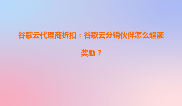 2025-08-11谷歌云代理商折扣:谷歌云分销伙伴如何获得超额奖励? 在云计算市场竞争日益激烈的今天,谷歌云(GoogleCloud)凭借其强大的技术实力和全球化的基础设施,成为越来越多企业的首选。而作为谷歌云的分销伙伴(代...