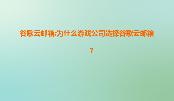 为什么游戏公司选择谷歌云邮箱? 在当今数字化时代,游戏公司面临着日益增长的通信需求和数据管理挑战。为了提升团队协作效率、保障数据安全并优化运营流程,越来越多的游戏公司选择使用谷歌云邮箱(GoogleWor...