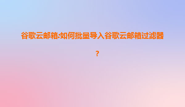 2025-08-08谷歌云邮箱:如何批量导入谷歌云邮箱过滤器? 一、谷歌云邮箱的优势 谷歌云邮箱(Gmail)作为全球领先的电子邮件服务之一,凭借其强大的功能和稳定的性能,成为企业和个人用户的首选。以下是谷歌云邮箱...