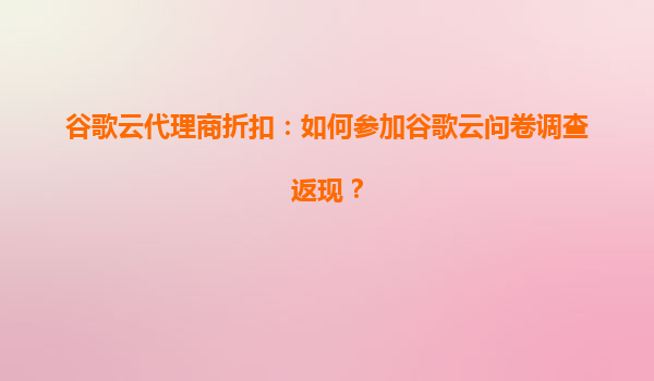 2025-08-08谷歌云代理商折扣:如何通过问卷调查获取返现优惠 作为全球领先的云计算服务提供商,谷歌云凭借其强大的技术实力和创新的解决方案,为企业用户提供了高效、安全且灵活的云服务。通过参与谷歌云代理商组织的问卷调...