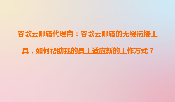 2025-11-01谷歌云邮箱代理商:谷歌云邮箱的无缝衔接工具,如何帮助我的员工适应新的工作方式? 一、为什么选择谷歌云邮箱作为企业协作平台? 谷歌云邮箱(GmailforBusiness)作为全球领先的企业级邮件服务...