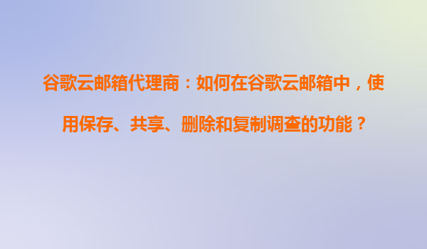 2025-11-01谷歌云邮箱代理商指南:高效使用调查功能 一、引言:谷歌云邮箱与代理商的协同优势 谷歌云邮箱(GmailforBusiness)作为企业级邮件解决方案,通过数据加密、多层级安全防护和无限存储空间,...