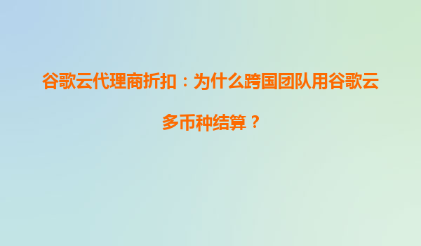 2025-08-07谷歌云代理商折扣:为什么跨国团队用谷歌云多币种结算? 一、引言:全球化企业的云服务挑战 在全球化业务布局的今天,跨国企业面临着IT基础设施部署、成本优化和财务管理的多重挑战。谷歌云(GoogleCloud)...
