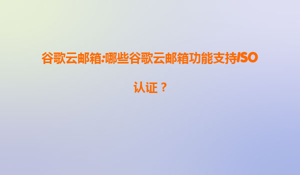 2025-08-07谷歌云邮箱:哪些功能支持ISO认证及其核心优势解析 一、谷歌云邮箱与ISO认证的关联 ISO(国际标准化组织)认证是衡量企业服务安全性与合规性的重要标准。谷歌云邮箱(GoogleWorkspace)作为...
