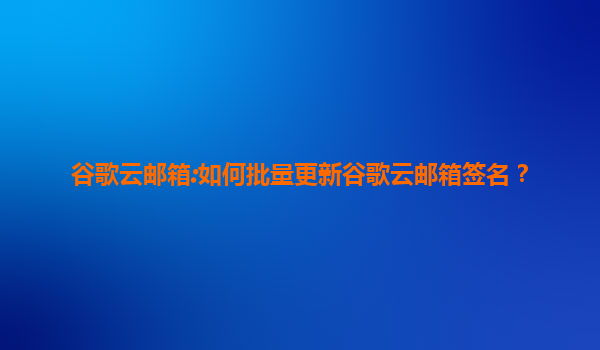 2025-08-06谷歌云邮箱:如何批量更新谷歌云邮箱签名? 在当今数字化办公环境中,企业邮箱签名不仅是个人身份的延伸,更是品牌形象的重要展示窗口。谷歌云邮箱(GmailforBusiness)作为全球领先的企业邮箱解决方案,凭借...