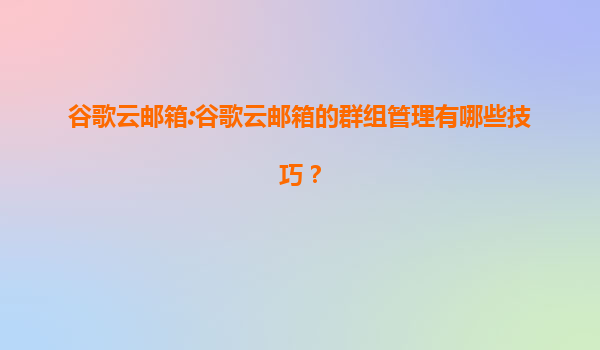 2025-08-06谷歌云邮箱群组管理技巧与最佳实践 一、谷歌云邮箱群组管理的核心优势 谷歌云邮箱(GoogleWorkspace)的群组管理功能依托于谷歌强大的云计算基础设施,具备以下独特优势: 无缝集成生态:与G...