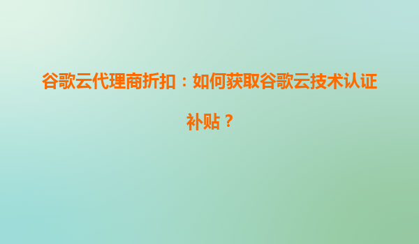 2025-08-05谷歌云代理商折扣:如何获取谷歌云技术认证补贴? 一、谷歌云的核心优势 谷歌云(GoogleCloudPlatform,GCP)作为全球领先的云计算服务提供商,凭借其技术创新和生态整合能力,为企业提供了以下核心优势: ...