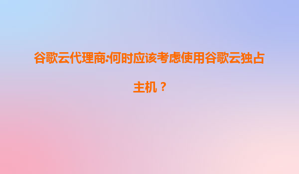 2025-08-04何时应该考虑使用谷歌云独占主机? 什么是谷歌云独占主机? 谷歌云独占主机(Sole-tenantNodes)是一种专为单个客户提供的物理服务器资源,确保您的工作负载在专用硬件上运行。与共享主机不同,独占主机让您完...