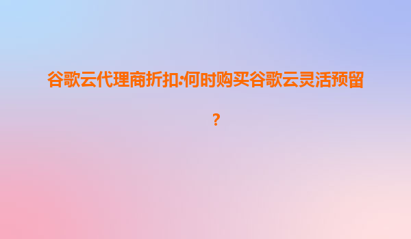 2025-08-03谷歌云代理商折扣:何时购买谷歌云灵活预留? 在云计算领域,谷歌云(GoogleCloud)凭借其强大的基础设施、灵活的计费方式和全球覆盖的数据中心,成为众多企业的首选。然而,直接通过谷歌云官方购买服务可能...