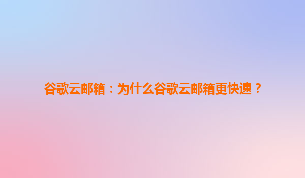 2025-08-02谷歌云邮箱:为什么谷歌云邮箱更快速? 引言 在当今快节奏的数字化时代,电子邮件作为企业沟通的重要工具,其速度和稳定性直接关系到工作效率。谷歌云邮箱(Goo...