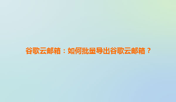 2025-08-02谷歌云邮箱:如何高效批量导出数据并发挥谷歌云优势 一、谷歌云邮箱的核心优势 谷歌云邮箱(GSuite/GoogleWorkspace)作为企业级解决方案,提供以下核心优势: 99.9%运行时间SLA保障-谷歌全球基础设...