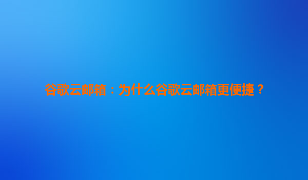 谷歌云邮箱:为什么谷歌云邮箱更便捷? 引言 在当今数字化时代,电子邮件已成为企业和个人日常沟通的重要工具。谷歌云邮箱(GoogleWorkspace,原GSuite)凭借其强大的功能和云端优势,成为众多企业和个人...