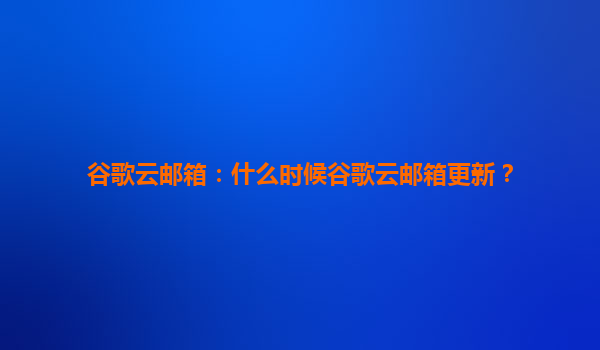 2025-07-31谷歌云邮箱:什么时候谷歌云邮箱更新? 一、谷歌云邮箱的核心优势 谷歌云邮箱(Gmail)作为全球领先的电子邮件服务之一,依托谷歌云(GoogleCloud)的强大基础设施,为用户提供了高效、安全且智能的通信体...