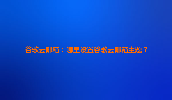 2025-07-29谷歌云邮箱:哪里设置谷歌云邮箱主题? 一、谷歌云邮箱主题设置方法 谷歌云邮箱(Gmail)作为全球领先的电子邮件服务之一,提供了丰富的个性化设置选项,包括主题背景的更换。以下是设置谷歌云邮箱主题...