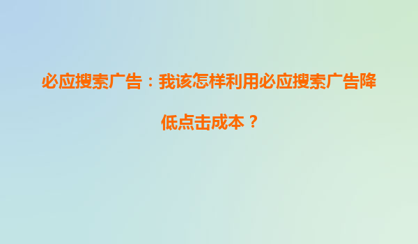 必应搜索广告:我该怎样利用必应搜索广告降低点击成本?