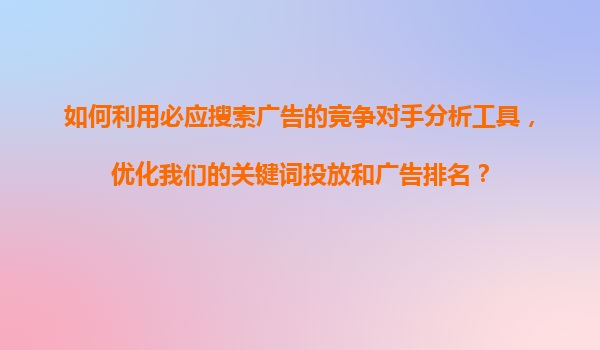 必应搜索引擎竞价推广的标题分析与优势解析 一、标题内容的核心要素解析 竞价推广标题通常包含以下关键信息点:1)推广产品或服务名称(如“必应搜索推广”),明确主体;2)核心优势关键词(如“精准投放...