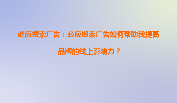 2025-08-21必应搜索引擎竞价推广的核心优势与标题内容深度解析 一、必应竞价推广的独特市场价值 必应搜索作为微软旗下的核心搜索引擎,在全球市场份额中占据重要地位,尤其在欧美高端商业用户群体中渗透率高达30%。其...