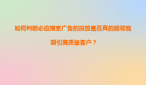 2025-11-04标题与必应搜索引擎竞价推广的关系 在数字营销领域,标题是吸引用户点击的第一要素,尤其对于搜索引擎竞价推广(SEM)而言,标题的优化直接影响广告的点击率(CTR)和转化效果。必应(Bing)作为全球第二大搜索引擎...