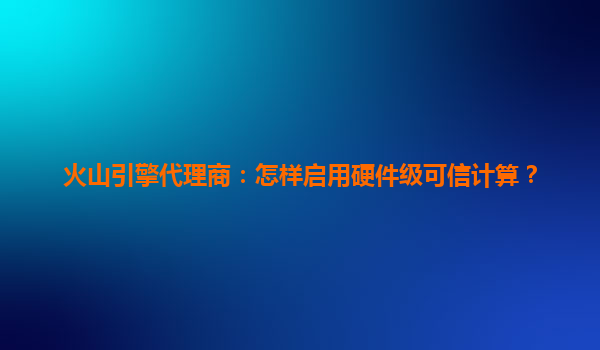 火山引擎代理商指南:如何高效启用硬件级可信计算
