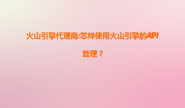 火山引擎代理商:高效使用API管理的实战指南