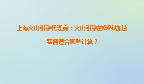 上海火山引擎代理商:火山引擎的GPU加速实例适合哪些计算?