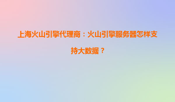 上海火山引擎代理商:火山引擎服务器如何高效支持大数据处理?