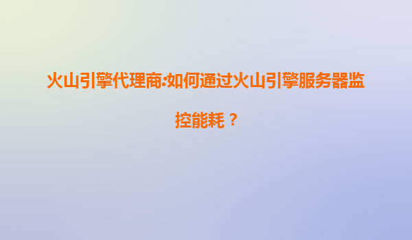 火山引擎代理商如何通过火山引擎服务器监控能耗