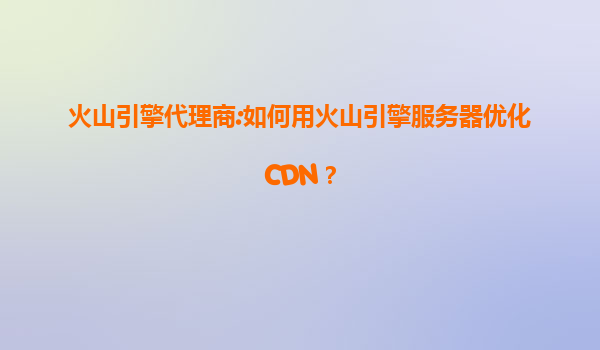 火山引擎代理商:如何用火山引擎服务器优化cdn?