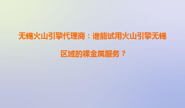 无锡火山引擎代理商:谁能试用火山引擎无锡区域的裸金属服务?