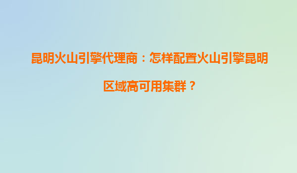 昆明火山引擎代理商:如何配置火山引擎昆明区域高可用集群