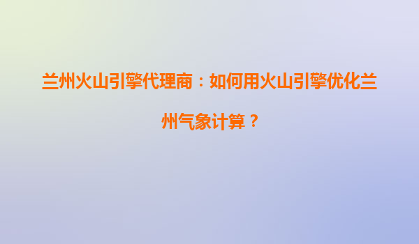 兰州火山引擎代理商:如何用火山引擎优化兰州气象计算?