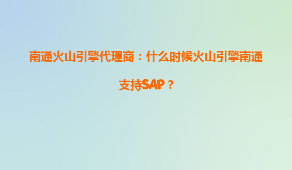 南通火山引擎代理商:火山引擎南通何时支持SAP?