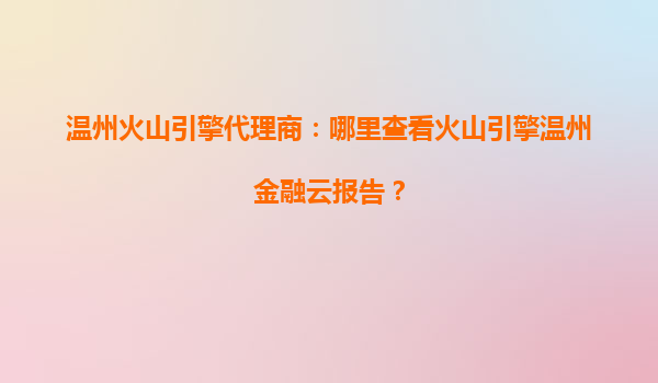 温州金融云报告查询指南:火山引擎赋能的数字金融解决方案