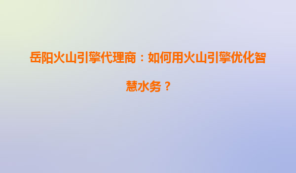 岳阳火山引擎代理商:如何用火山引擎优化智慧水务?