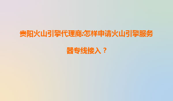 贵阳火山引擎代理商:如何申请火山引擎服务器专线接入?