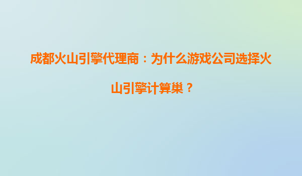 成都火山引擎代理商:为什么游戏公司选择火山引擎计算巢?