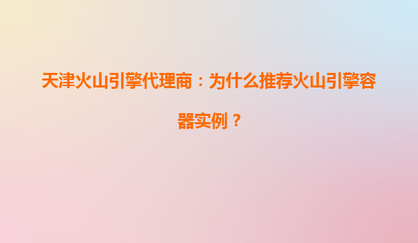 天津火山引擎代理商:为什么推荐火山引擎容器实例?