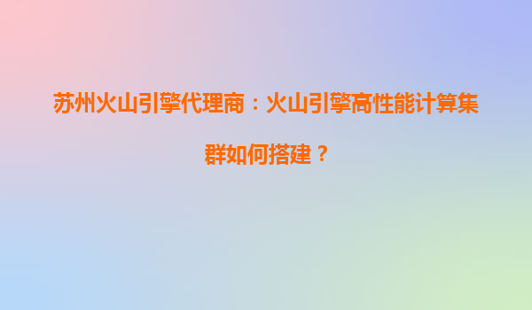 苏州火山引擎代理商:火山引擎高性能计算集群如何搭建?