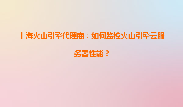上海火山引擎代理商:如何监控火山引擎云服务器性能?