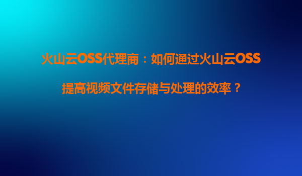 火山云oss代理商:如何通过火山云OSS提高视频文件存储与处理的效率?
