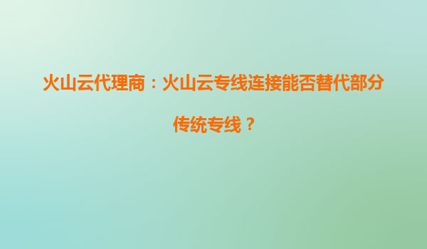 火山云代理商:火山云专线连接能否替代部分传统专线?