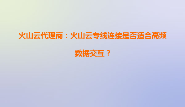 火山云代理商:火山云专线连接是否适合高频数据交互?