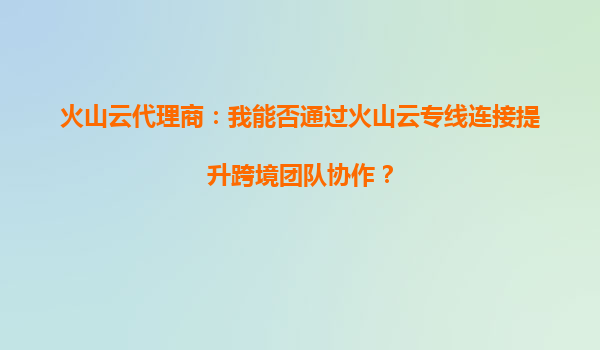 火山云专线连接:优化跨境团队协作的数字化解决方案