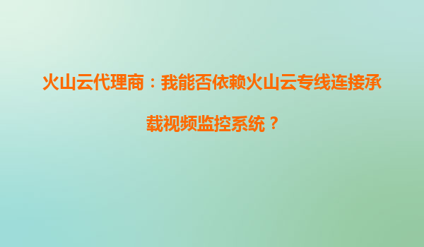 火山云代理商:能否依赖火山云专线连接承载视频监控系统?