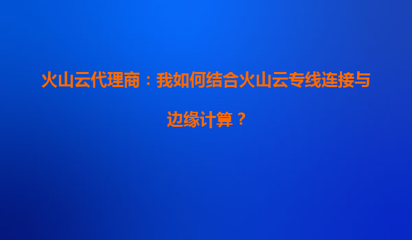 火山云代理商:如何结合火山云专线连接与边缘计算实现业务升级