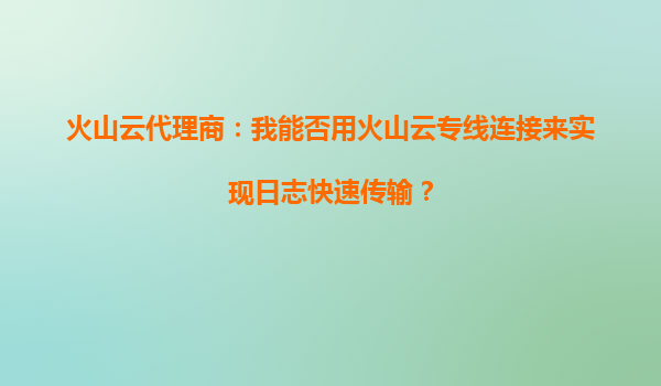 火山云代理商:如何用火山云专线实现日志快速传输?