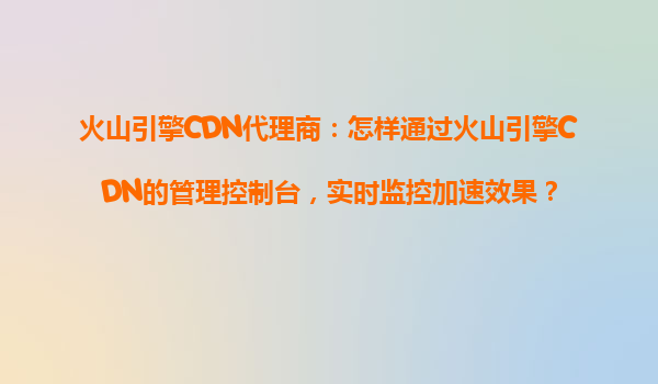 火山引擎cdn代理商:如何通过管理控制台实时监控加速效果?