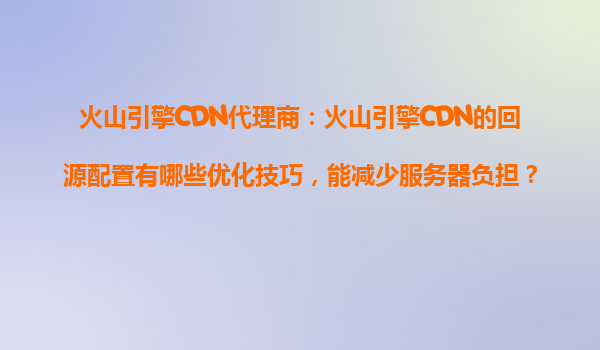 火山引擎cdn代理商:火山引擎CDN的回源配置优化技巧