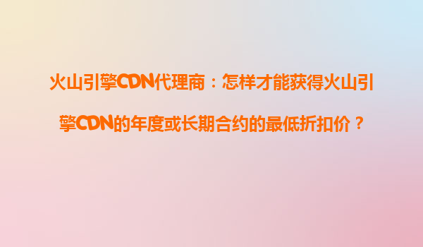 火山引擎cdn代理商:怎样才能获得火山引擎CDN的年度或长期合约的最低折扣价?